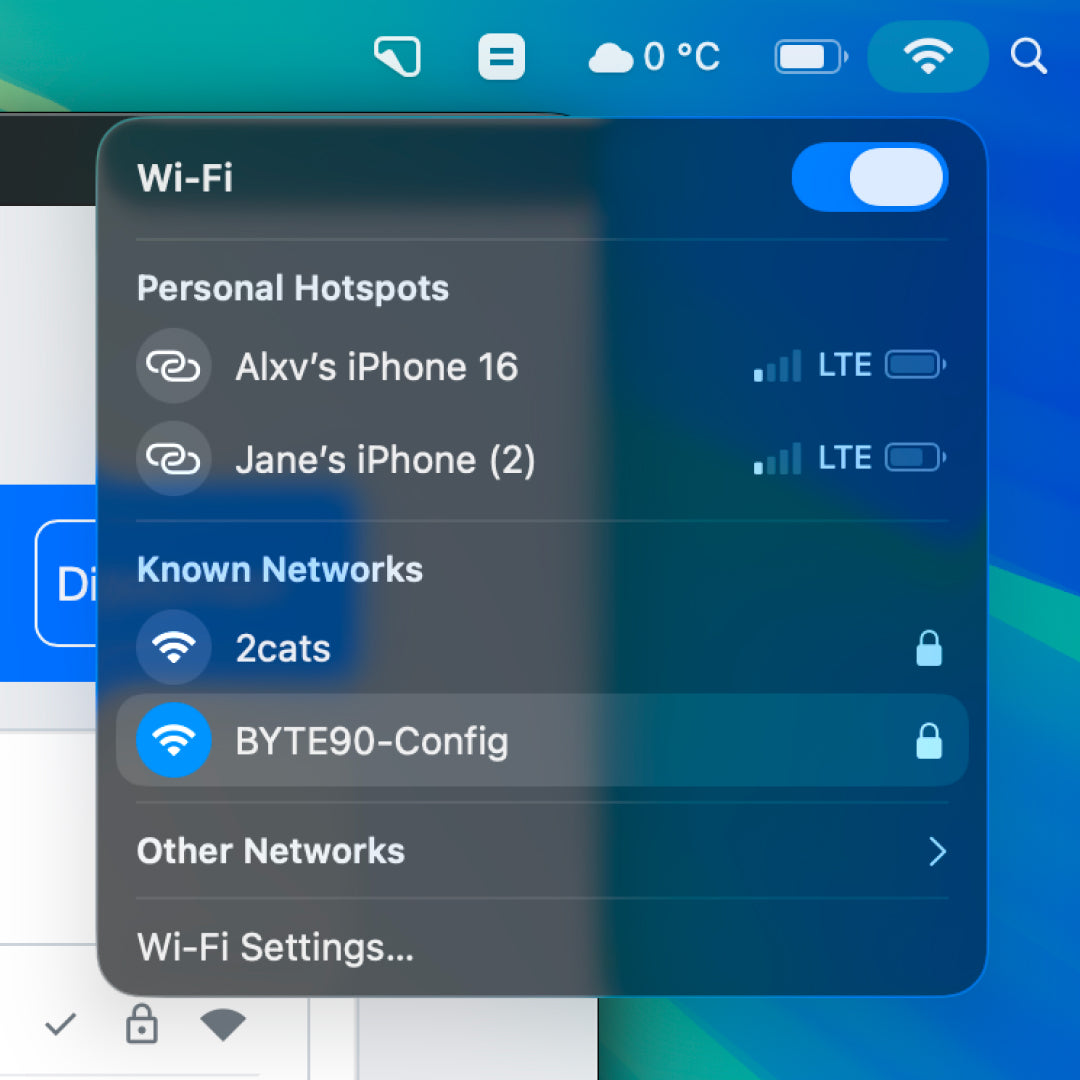 - Connect your phone or computer to BYTE90_Config.